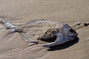 only this fish-gut-reeking beach